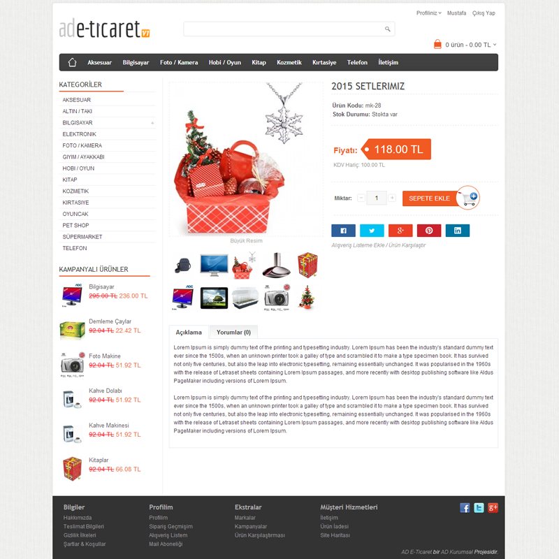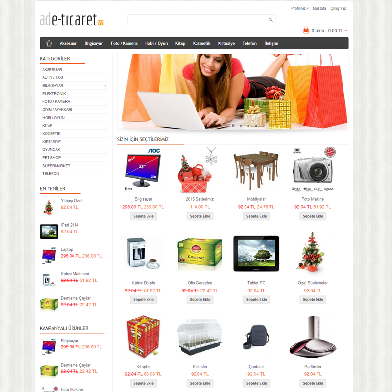 Kolay kullanım özellikleri ve yeni teknolojileri ile sitenizin yönetimini hem daha hızlı, hem de daha kolay kullanın! Boşa zaman harcamadan E-Ticaret paketlerimiz ile online mağazanızı oluşturabilirsiniz. Puan Sistemi, Reklam, Hediye Çeki ve E-Posta gönderimi gibi birçok özelliği mağazanızda kullanarak satış rakamlarınızı arttırabilirsiniz.